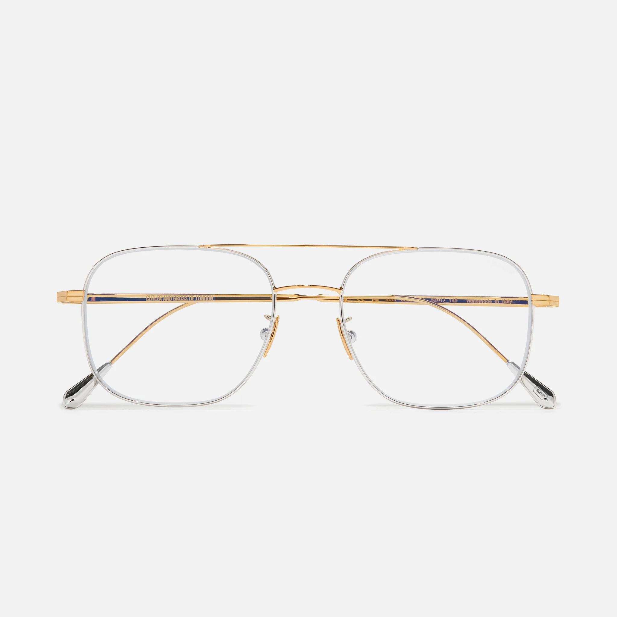 With lightness and functionality as its core, the AUOP 0001 is a contemporary and easy-wearing metal pantos. An inspired renewal of our original 1990s model 0306, this frame allows for uncompromising fit and comfort alongside sharp stylistic features. Available plated in either 18K White Gold Rhodium, 18K Gold, 18K Rose Gold, or a combination of precious metals Rose Gold 18K + Rhodium 18K.